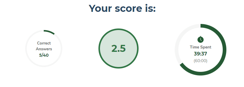 Once the learner submits their response, the result page is an advanced representation or detailed reporting of their performance in the test wherein scores reflect test takers’ strength of the preparation, time taken highlights their organizational skills and answer key traces out their accuracy.