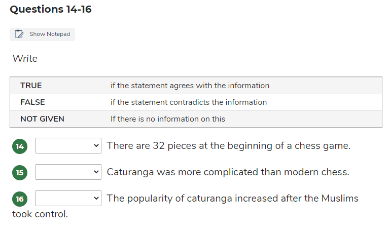 Question type such as true-false or paragraph summary comes in the form of select type question in IELTS.
